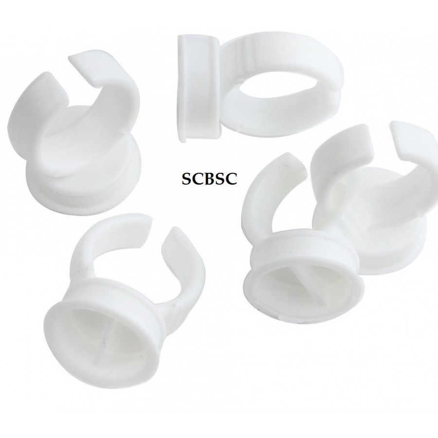 Bague en plastique jetable munie de deux compartiments permettant la pose d'extensions de cils en évitant les mouvements inutiles. Gagnez en rapidité en ayant tout à portée de doigts.