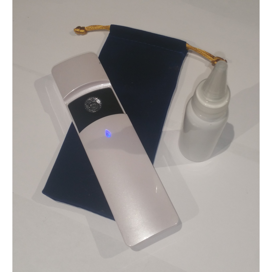 - Contient: câble de chargeur USB, flacon de 50 ml de recharge (pas de solution inclus, utiliser de l'eau distillée) et pochette de Voyage