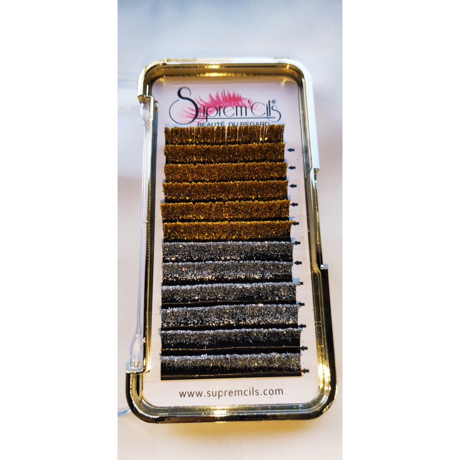 Palette De 12 Lignes extension de cils "Glitter", 6 lignes dorées et 6 lignes argentées
